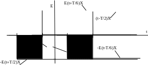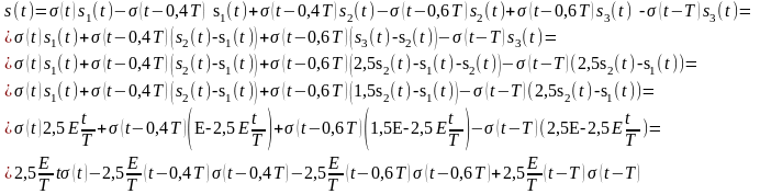 Входной сигнал является суммой функций Хевисайда, сдвинутых по временной оси и умноженных на амплитуду сигнала Е.