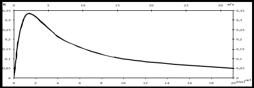 | К() | 0 | 0,22 | 0,32 | 0,33 | 0,32 | 0,26 | 0,18 | 0,10 | 0,05 | 0 |