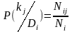 , где Ni – число состояний объекта из общего числа состояний N, у которых имел место диагноз Di, а P(kj/Di) – вероятность появления диагностического признака kj у объекта с диагнозом Di. Если среди Ni состояний объектов, имеющих диагноз Di, у Nij появился признак kj, то