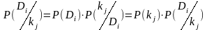 Из изложенного выше вытекает, что вероятность совместного появления следующих событий: наличия у объекта диагноза Di и диагностического признака kj – равна: