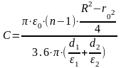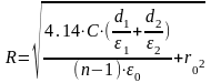 d1, d2 – толщина воздушной и диэлектрической прослойки соответственно, мм;