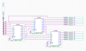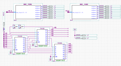 Рис. 7. Схема преобразователя двоичного кода от 0 до 255 в двоично-десятичный код, подготовленная для загрузки на стенд.