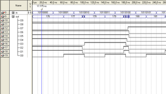 Кроме этого, в среде Quartus II была смоделирована схема. После симуляции были получены временные диаграммы, что свидетельствуют о корректной работе схемы. Схема преобразователя кода готова также для загрузки на учебный стенд.