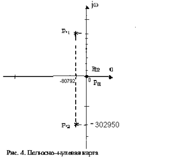 Полюсно–нулевая карта, построенная по этим данным, представлена на рис.4.