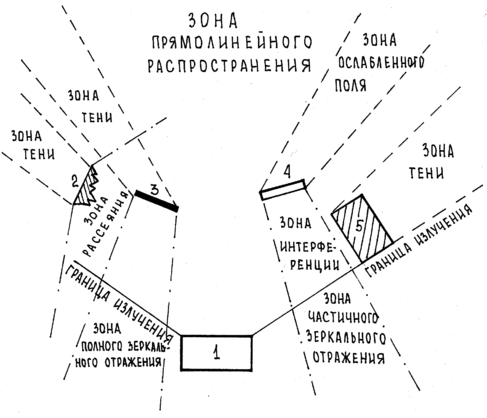 Характер воздействия различных препятствий на электромагнитную волну сантиметрового диапазона различен и зависит от материала и размера препятствия, формы и качества его поверхности. По степени воздействия препятствия можно разделить на отражающие, поглощающие и ослабляющие.