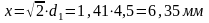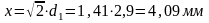 Расстояние между центрами жил (x) найдем из выражения: