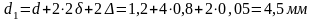 Определим расстояние между центрами пары проводников, находящихся внутри четверки в кабеле МКСГ 4х4х1,2 и диаметр звездной группы. При этом необходимо учесть, что под парой проводников подразумеваются противоположно расположенные проводники внутри четверки. Диаметр изолированной жилы: