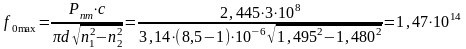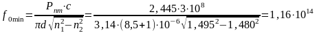 Определим, насколько изменится критическая частота при изменении диаметра сердцевины ОВ в пределах нормы. Из справочных материалов известно, что диаметр сердцевины может меняться в пределах 8,5