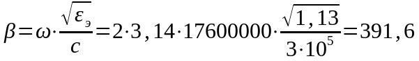 Определим коэффициент фазы коаксиальной пары 2,6/9,5 по формуле: