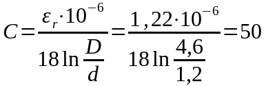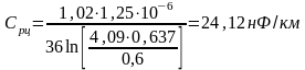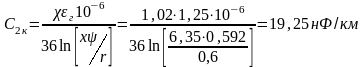 Емкость симметричной цепи, в проводниках которой оказалось по 2 корделя с учетом близости соседних пар определим из выражения: