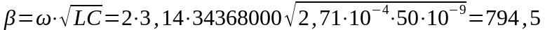 . Для вычисления по этой формуле нам необходимо сначала определить первичные параметры коаксиальной пары – C, L на заданной частоте системы передачи ИКМ-480, равной 34368 кГц.