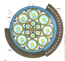 Рисунок 1 - Разрез комбинированного коаксиального кабеля типа КМ-8/6: