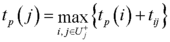 Ранний срок свершения события (характеризует самый ранний срок завершения всех путей для вершины графа, в нее входящих. Этот показатель определяется "прямым ходом" по графу модели, начиная с начального события сети.) вычисляется по формуле