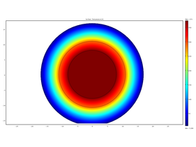 Создать двухмерную оси симметричную модель трубы в теплоизоляции. Расчет нестационарный. Начальная температура 300 К. Температура внешней среды 300 К. Коэффициент теплоотдачи внутри трубы 40 Вт/м2К. Снаружи 5 Вт/(м2К). Коэффициент черноты 0.5. Температура теплоносителя 373К, и параметры трубы: 8 мм – внутренний радиус, 3мм – толщина трубы (сталь), 6мм – толщина теплоизоляции (стекловата). Длину трубы принять 1 м, условия на торцах адиабатические. Свойства материалов взять из справочника материалов.