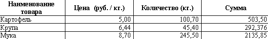 Пусть дана таблица, содержащая накладную на товар, имеющийся на некотором складе: