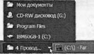 Как только вы запустите какую-то программу или игру, тут же на панели задач появляется прямоугольная кнопка с ее именем. Если внимательно посмотреть на рисунок, можно увидеть, что в тот момент, когда я делал эту иллюстрацию, у меня были запущены (слева направо) браузер Opera, текстовый редактор Microsoft Word, графический редактор Adobe Photoshop, почтовая программа The Bat, а также Far Manager. В Ворде я пишу эту книгу, с помощью Фотошопа обрабатываю иллюстрации для нее, с помощью Фара управляюсь: файлами. Интернетовские сайты мне показывает Opera, а письма читателей -The Bat!