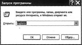 Следующая команда главного меню Выполнить (Run) дает нам что-то вроде досовской командной строки, чтобы мы могли запустить какую-то программу с параметрами. Причем эта интеллектуальная командная строка запоминает имена и адреса программ, которые мы ранее запускали. Стоит нам еще раз выбрать строку Выполнить, и мы увидим в ней предыдущую команду (см. рис. 34) и сможем немедленно повторить ее запуск, что-то в ней поправить, добавить или поменять параметры и т. д.