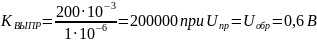 - Обратное сопротивление при Uобр = 1 В……………………...1 МОм;