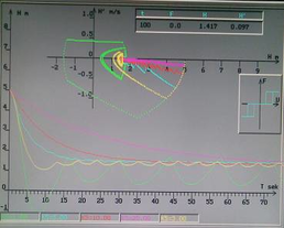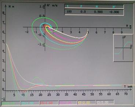 Выводы: управление подводным аппаратом по разомкнутому контуру, путём подачи на двигатель постоянного напряжения позволяет лишь разогнать аппарат до определённой скорости погружения или всплытия. Увеличение скорости движения П.А. при увеличении управляющего напряжения возможно лишь в пределах линейной зоны статической характеристики движителя. Автоматическое выведение подводного аппарата над дном невозможно, т.к. в момент встречи аппарата с дном его вертикальная скорость не равна нулю.