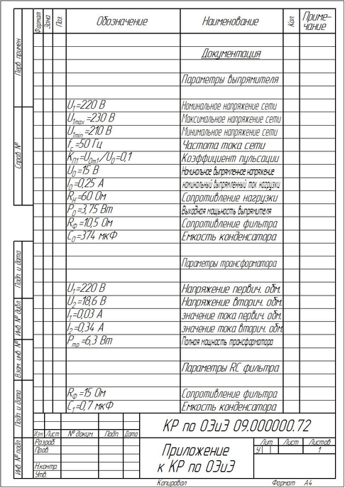 Расчеты показали, что параметры выбранного диода (вентиля) подходят для расчетных значений выпрямителя.