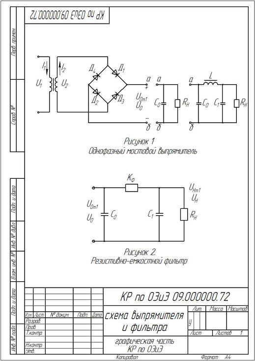 Данная курсовая работа состоит из двух частей: в первой части курсовой работы рассмотрены основные параметры однофазных выпрямителей и сглаживающих фильтров; во второй части произведен расчет однофазных мостовых выпрямителей, работающих на емкостной и Г- образный фильтры RC, а также расчет резистивно-емкостных фильтров.