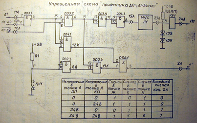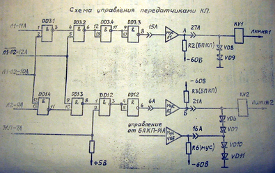 3.9. В КП прием команд от ДП происходит аналогично, за исключением того, что во время передачи сигнала ЗАПУСК от КП, прием сигналов, поступивших от ДП, запрещается путем подачи сигнала «0» на конт. 5А УПР КП. При этом на выходах приемников Л1 и Л2 (конт. 2А и 3А) образуется сигнал «1», независимо от сигналов на других входах.