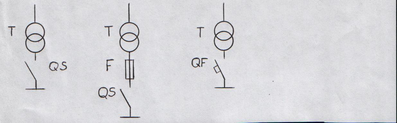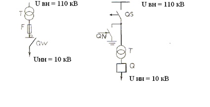 Для схемы питания понижающего трансформатора от магистральной линии, приведенной на рис. 4, выбрать разъединитель QS и предохранитель F в соответствии с исходными данными индивидуального варианта, приведенными в табл. 2-3. Для схем, приведенных на рис. 5, выбрать предохранитель F, короткозамыкатель QN и выключатель Q в соответствии с исходными данными индивидуального варианта, приведенными в табл. 4. Условия выбора, расчетные и справочные значения проверяемых величин записать в таблицу, аналогично приведенной в примере II.2.