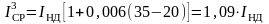Номинальный ток теплового расцепителя принимается ближайший больший номинального тока двигателя с поправкой на окружающую температуру: помещение, где установлены двигатели и автоматы обычное, отапливаемое, с температурой t = 20 °С; завод калибрует автоматы АП50 при температуре +35 °С, поэтому номинальные токи зависимых расцепителей выбираются по уравнению (6):