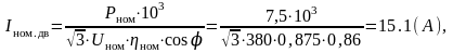Для выбора аппарата по основным техническим параметрам необходимо произвести предварительные расчеты номинального и пускового токов двигателя. Определим номинальный ток (действующее значение):