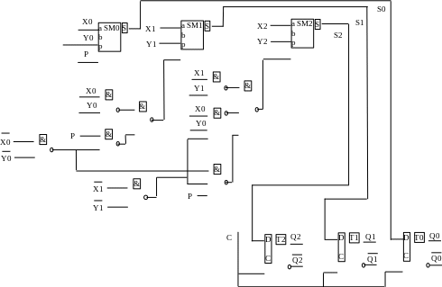 Одноразрядный сумматор рис.1 имеет три входа (два слагаемых и перенос из предыдущего разряда) и два выхода (суммы и переноса в следующий разряд).