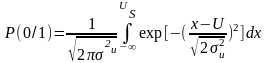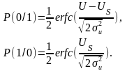 Знайдемо залежність коефіцієнта помилок від відношення сигнал/шум. Припустимо, що напруга сигналу є випадковою величиною з гауссовським законом розподілення, стандартним відхиленням u. Вона центрована на u, коли випромінюється символ "1", та на нуль коли передається "0". Тому умовна ймовірність прийняття символу "0" при передачі символу "1" дорівнюватиме ймовірності того, що напруга на виході приймача буде нижче порога US. Отже, вираз для цієї ймовірності матиме вигляд