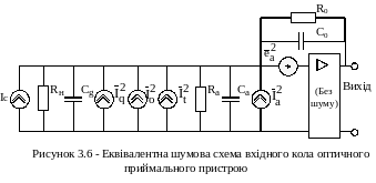 На наведеній схемі (рис. 1) присутні дві групи джерел шуму: шумові джерела власне фотодетектора (це джерела струму
