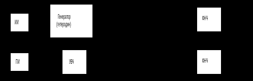 Структурная схема выделения сигнала доплеровского смещения приведена на рис.2. Такая схема носит название квадратурного синхронного детектора. Она будет нам встречаться еще не раз. Генератор УЗ колебаний, который здесь играет также и роль гетеродина, возбуждает источник излучения ИИ и вырабатывает квадратурные, т.е. сдвинутые по фазе на 90о, опорные сигналы, условно обозначенные как cosf0 и sinf0. Приемник излучения ПИ выдает сигнал со смещенной частотой f0 + fсм. В принципе, источник и приемник могут представлять собой один и тот же преобразователь.