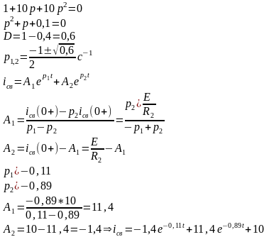 Ответ: i(t) = 10 + 0,19 e –0,113t – 10,18 e –0,887t