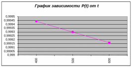 P( t1 ) = е – 0,0000014*400 = 0,999440157;
