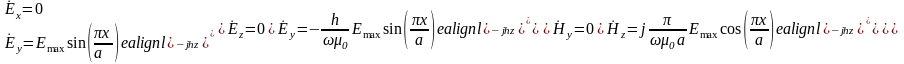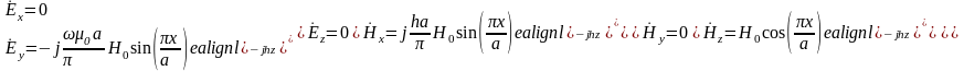 Приведем выражения, определяющие пространственную зависимость комплексных амплитуд декартовых проекций векторов электромагнитного роля для волны типа Н10 [1](8.52):