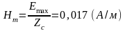 -максимальную амплитуду напряженности электрического поля, наблюдаемую в центре широкой стенки волновода [1](8.53):