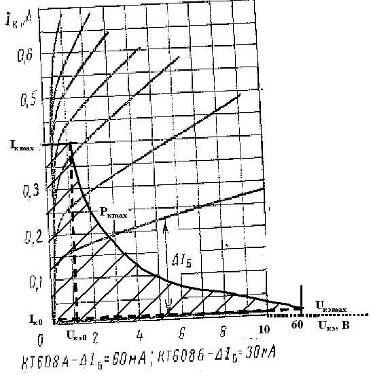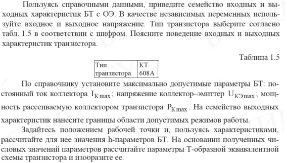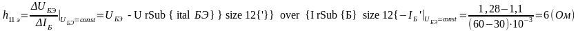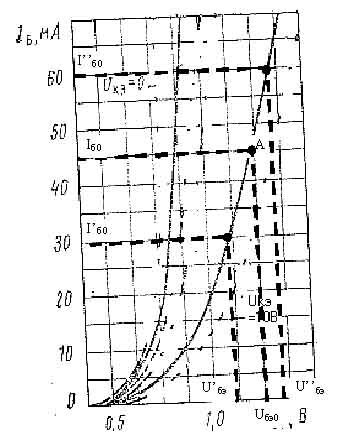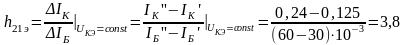 ), соответствующей точке А на семействе входных характеристик, выполняют построения как показано на рис.2. Найденные приращения токов и напряжений позволяют определить искомые параметры: