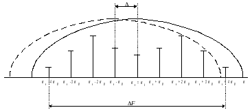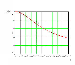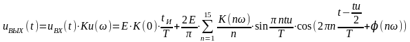 1. Определим изменение напряжения на емкости в момент времени 0≤t В соответствии с классическим методом расчета, переходное напряжение представляют в виде суммы принужденного и свободного напряжений. u (t) = uпр (t) +uсв (t) (1) где uпр (t) - принужденное напряжение, определяется в установившемся режиме после коммутации. Это напряжение создается внешним источником питания. Если в цепь включен источник постоянной ЭДС, принужденное напряжение будет постоянным, если в цепи действует источник синусоидальной ЭДС, принужденный напряжение изменяется по периодическому, синусоидальному закону; uсв (t) - свободное напряжение, определяется в схеме после коммутации, из которой исключен внешний источник питания. Свободное напряжение создается внутренними источниками питания например зарядом емкости. Свободное напряжение uсв (t) определяется по формуле uсв (t) =A1ep1t+A2ep2t+…. Количество слагаемых в формуле определяется числом реактивных элементов (индуктивностей и емкостей) где A1, A2 - постоянные интегрирования. p1, p2 - корни характеристического уравнения. Уравнение 1+pRC=0 называется характеристическим p=-1/RC - корень характеристического уравнения =1/p=RC - постоянная времени цепи Начальные условия - это переходные токи и напряжения в момент коммутации, в момент времени t, равный нулю. Исходя из вышесказанного формулу (1) можно записать в следующем виде: uc (t) = ucпр+Aept = ucпр+Ae-t/ (2) В начальный момент времени емкость не заряжена и uc (0) =0 uc (0) = ucпр+A A=uc (0) - ucпр=0 - ucпр= - ucпр=-E (3) На основании формул (1) и (2) переходное напряжение на емкости в момент времени 0≤t uc (t) = E-Ee-t/=E (1-e-t/) (4) 2. Определим изменение напряжения на емкости в момент времени t≥tи. В данный момент времени импульс на входе цепи равен 0 и емкость начинает разряжаться, что эквивалентно существованию в цепи только свободного напряжения, принужденное напряжение равно нулю. Напряжение на емкости за длительность импульса tи достигнет напряжения равного: uc (0) =A=ucсв (0) =E-Ee-tи/τ Тогда в соответствии с формулой (1) и с учетом того что принужденное напряжение равно нулю имеем переходное напряжение на емкости в момент времени t≥tи: uc (t) = ucсв (t) =Ae-t/τ= (E-Ee-tи/τ) e-t/ τ=E (e-t/ τ-e- (t+tи) /τ) (5) Подставив в формулы (4) и (5) значения заданного сигнала E=10В, tи=1мкс, а также τ =5tи =5мкс и просуммировав переходные напряжения на емкости в разные моменты времени получим отклик интегрирующей цепи на входной прямоугольный импульс: u 10 (e-t/0.000005-e- (t+0.000001) /0.000005) при t≥10-6 На рисунке 2 приведены графики u1 (t) и u2 (t) интегрирующая распределительная цепь напряжение Рисунок 2 Комплексная передаточная функция напряжения интегрирующей цепи равна: Тогда амплитудно-частотная и фазово-частотная характеристики примут вид: Графики амплитудно-частотной и фазово-частотной характеристик для заданной интегрирующей цепи приведем на рисунках 3 и 4 соответственно. Ширина полосы пропускания интегрирующей RC - цепи равна частоте среза ср=1/=1/510-6=2105 fср=ср/2=3,183104 Гц Рисунок 3 Рисунок 4 Пусть на вход этой же интегрирующей цепи воздействуют периодические прямоугольные импульсы с частотой 100 кГц, длительностью tи = 1 мкс. Определим отклик интегрирующей цепи на данное воздействие спектральным методом. Для этого произведем разложение периодической последовательности импульсов в ряд Фурье в вещественной форме. Ограничим количество гармонических сигналов в ряде 15-ю, что позволит получить сигнал с до