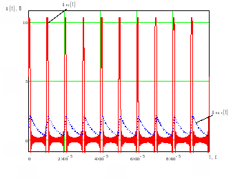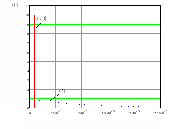 2 (t) = 10 (1-e-t/0.000005) при 0≤t<10-6