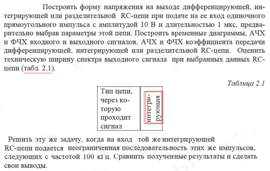 Согласно заданию на вход интегрирующей цепи воздействует одиночный прямоугольный импульс, описываемый следующим уравнением: