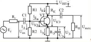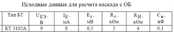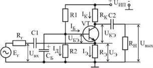 5% реальные сопротивления резисторов Rк и Rэ, ближайшими к рассчитанным значениям сопротивлениями обладают резисторы с номиналами 1,1 кОм и 220 Ом соответственно.