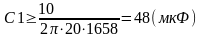 20% реальную емкость конденсатора C1, ближайшим большую сторону к рассчитанному значению емкости имеет конденсатор с номиналом 68 мкФ.