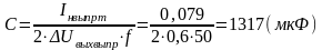 20% реальную емкость конденсатора C, ближайшим к рассчитанному значению емкости имеет конденсатор с номиналом 1500 мкФ.