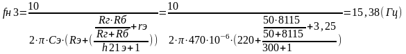 13. Определим нижние граничные частоты при выбранных емкостях C1, C2 и Сэ:
