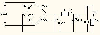 4. Определим сопротивление гасящего резистора, обеспечивающее требуемый коэффициент стабилизации: