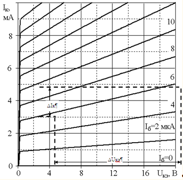 Определим выходную проводимость транзистора h22э по выходным характеристикам