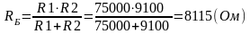 R1 = (Uип-Uб)/(Iд + Iб) = (19,8 – 2,4)/(27010-6 + 2710-6) = 74747 (Ом)