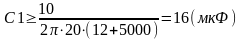 20% реальную емкость конденсатора C2, ближайшим в большую сторону к рассчитанному значению емкости имеет конденсатор с номиналом 15 мкФ.