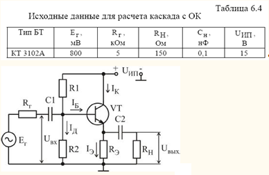 где Rвх - входное сопротивление каскада включенного по схеме с ОК;